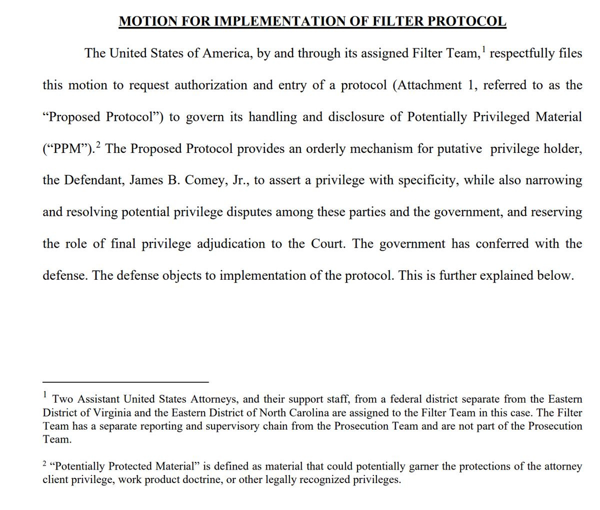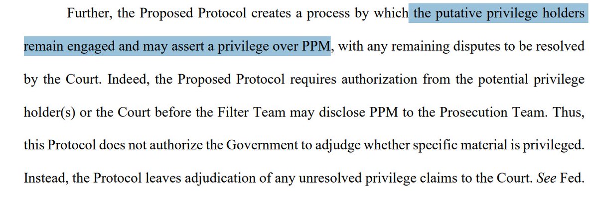 The Filter Team hasn't reviewed the material yet, but their job would be to identify and segregate the PPM from the evidence obtained through the previously mentioned attorney.