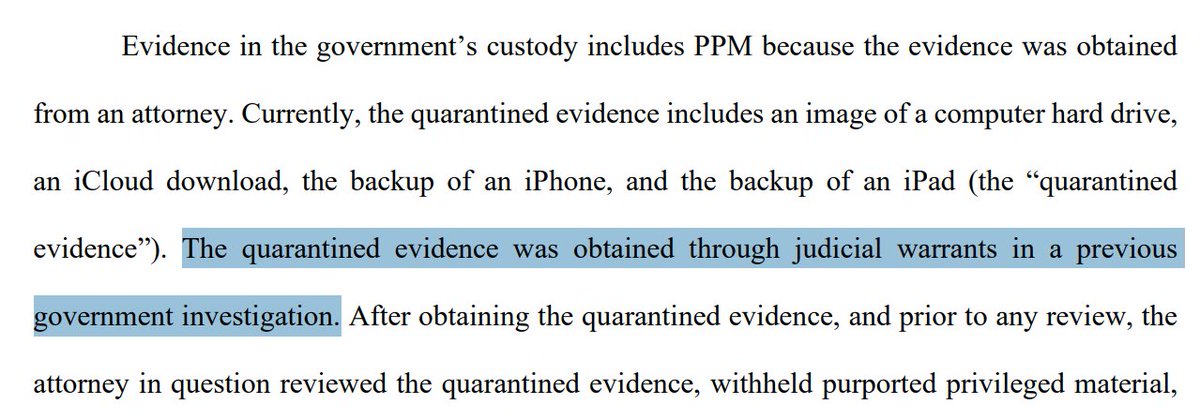 -"The quarantined evidence was obtained through judicial warrants in a previous government investigation."