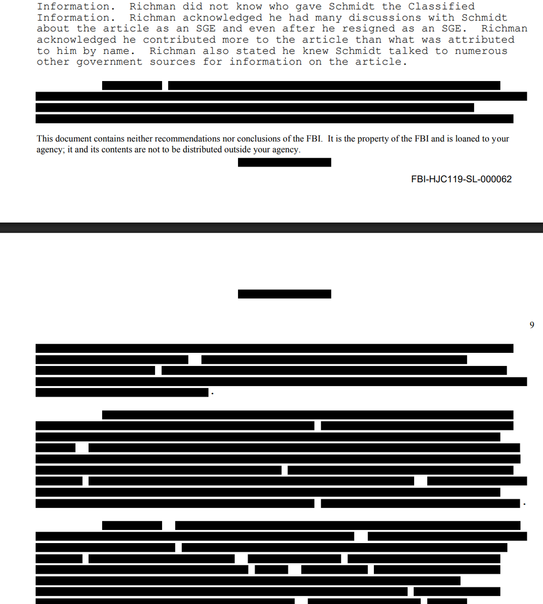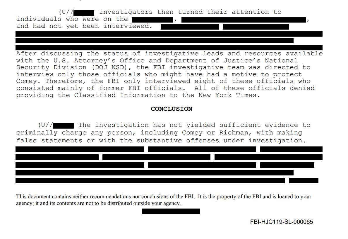 And they interviewed Richman as well as others, ultimately concluding that there was not "sufficient evidence to criminally charge any person, including Comey or Richman"