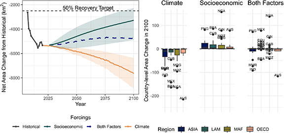 This means much greater conservation efforts will be needed to achieve substantial mangrove restoration by century's end.