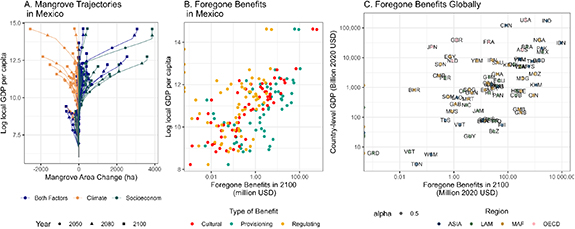 Even with economic growth favouring mangrove restoration, ocean warming threatens to cancel out these gains entirely.
