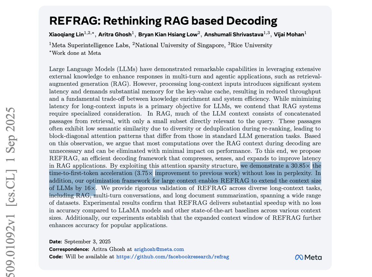 Their new REFRAG framework rethinks RAG from the ground up to achieve this, all with zero drop in accuracy.