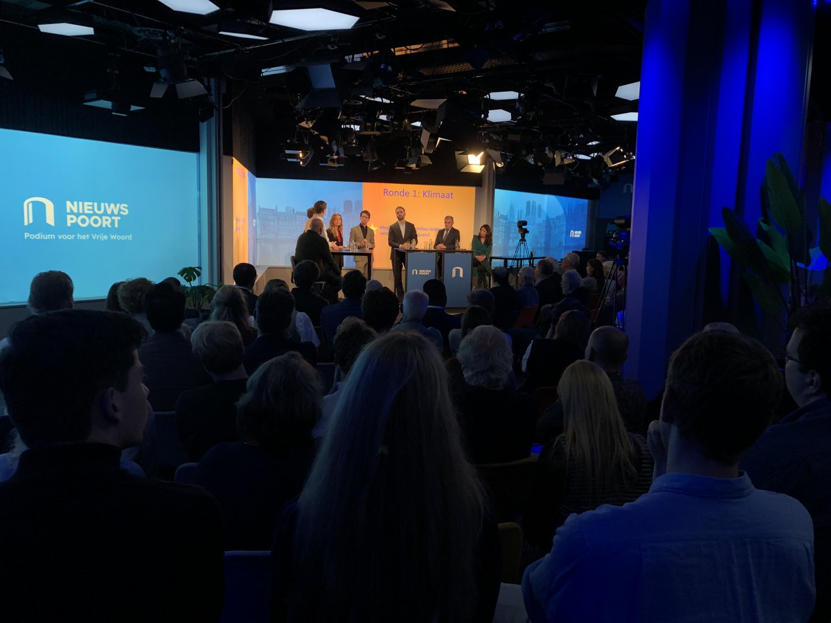Op de uitnodiging stond dat er meer kandidaten zouden komen, misschien, maar dat lijkt niet zo te zijn. FvD is er niet, die zitten nog te eten.