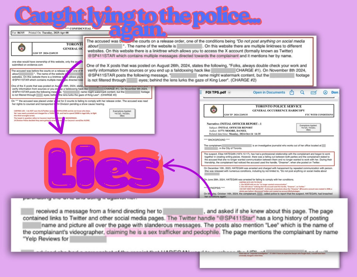 Caryma and Lee are based in Toronto and use iPhones. The harassment accts, generalized as Gigo, are based in Toronto and use an iPhone. Stalking photos/videos are Toronto locations. And, Gigo carelessly posted the Toronto CAS while threatening Ottawa-based activist Deana Sherif.