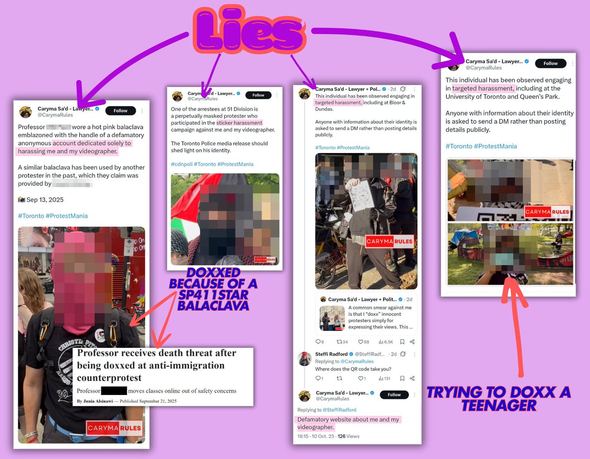 During Sa’d's three-minute speech she made multiple false or misleading statements in an effort to both paint protests as being unsafe for students and to brand herself as an expert with superior knowledge to CAHN. Sa'd has absurdly cast as herself as their rival.