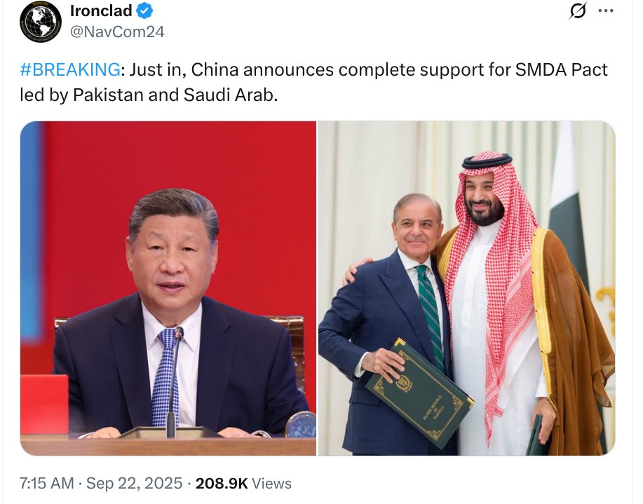 THREAD: The Strategic Mutual Defense Pact (SMDP) signed between Saudi Arabia and Pakistan on September 17th signals a seismic shift in global power dynamics.
