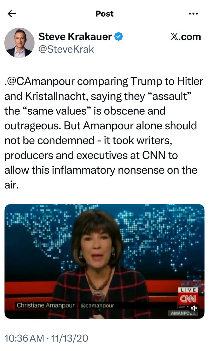 I know @amanpour has walked her original Trump-Hitler comparison back, but I think @SteveKrak’s criticism here is still entirely right: a team of @CNN writers and editors decided this comp was worth airing.