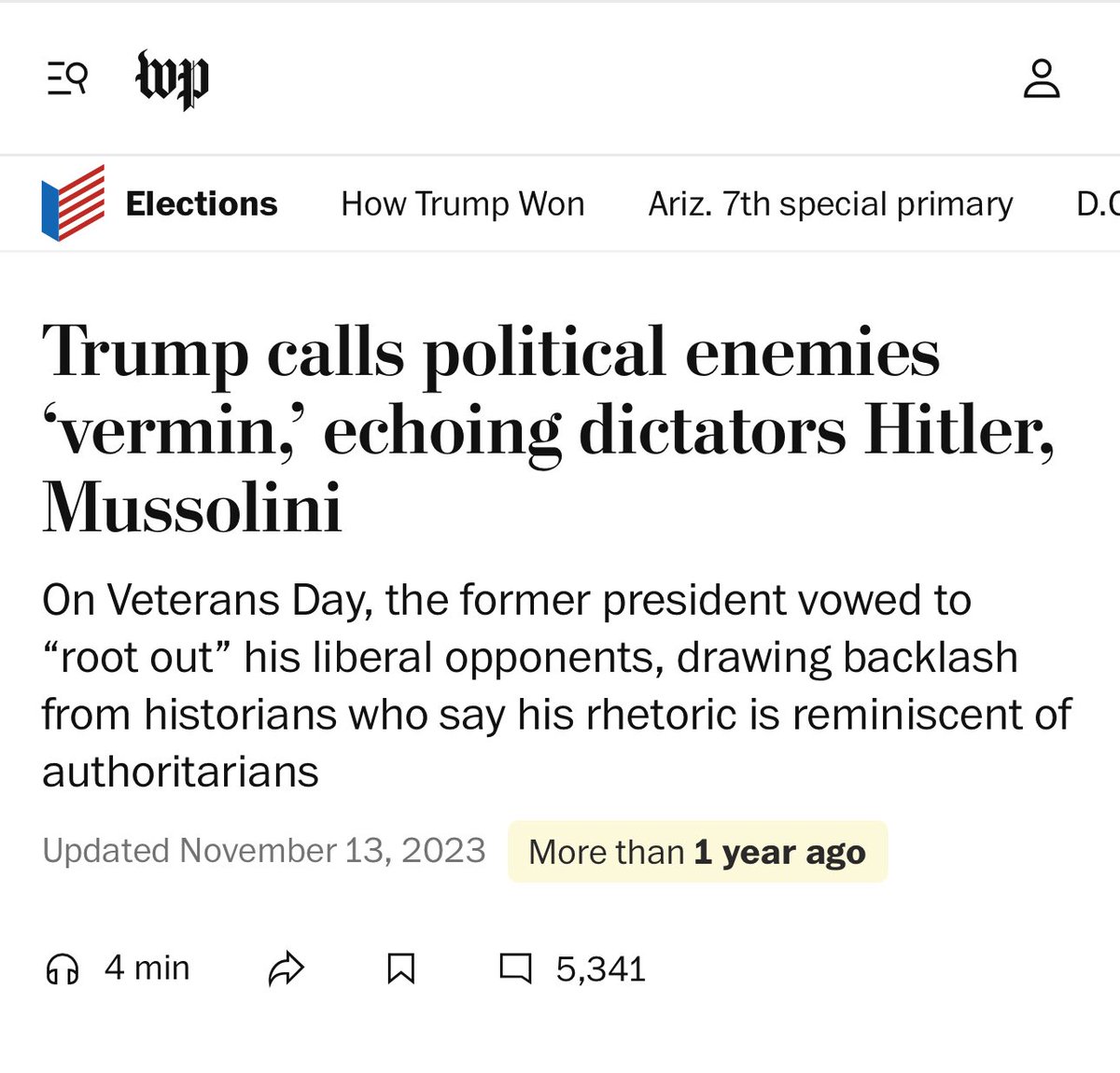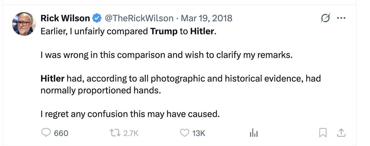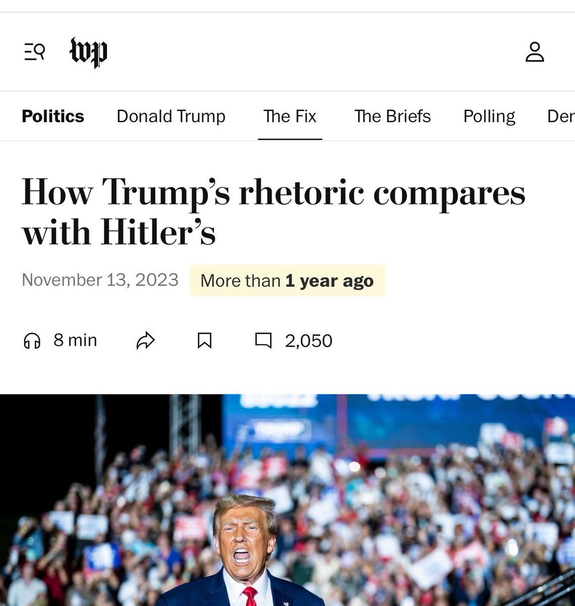 In 2023, @washingtonpost ran a piece titled “How Trump’s rhetoric compares with Hitler’s.”