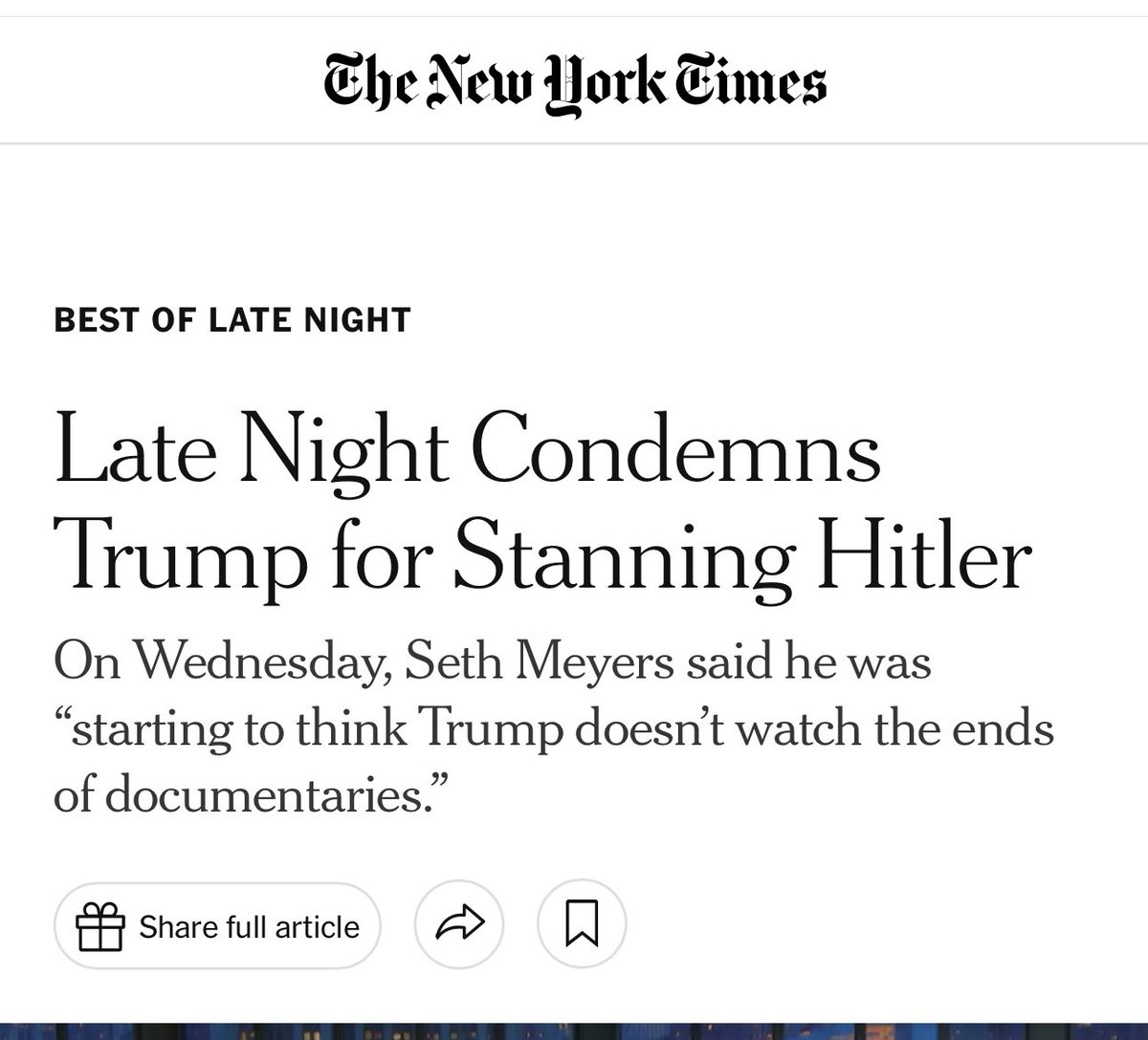 Remember the media hype for late night hosts going after “Trump for stanning Hitler”?