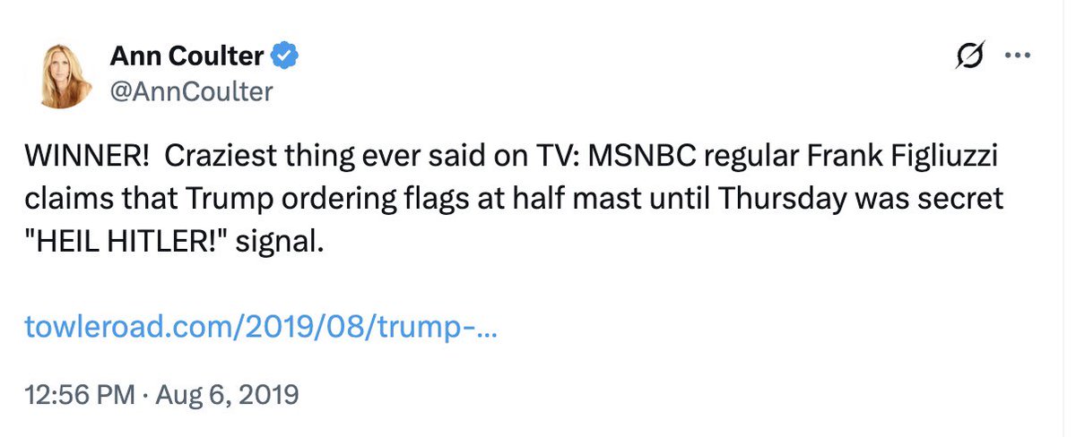 Few outlets have repeated the Trump-is-Hitler trope as frequently as @MSNBC. Here’s just a couple, also including their leading voices like @Lawrence, @ZeeshanAleem and Frank Figluizzi (h/t @AnnCoulter) with perhaps the most bizarre version.