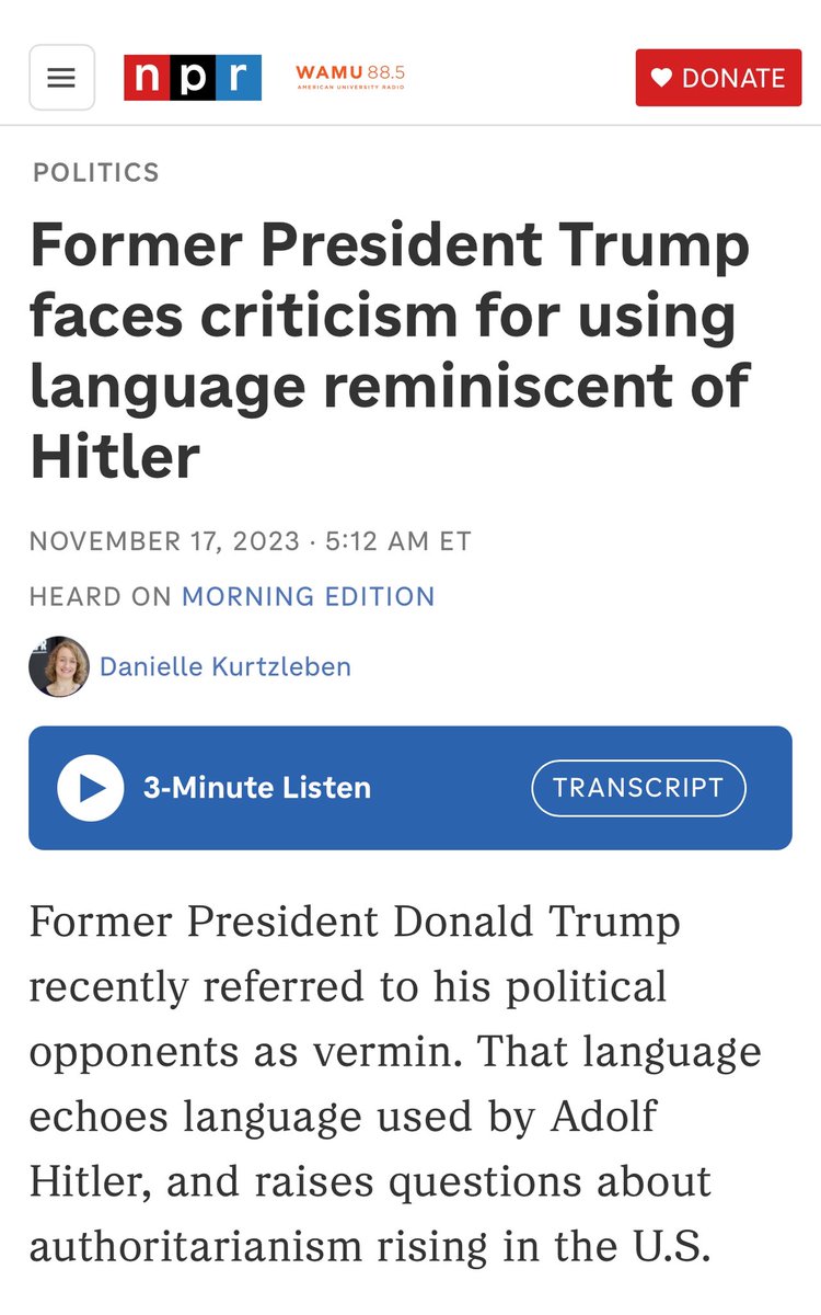 The podcast from @NPR is the more intellectually dishonest but I couldn’t resist including the headline “#Memeoftheweek: comparing Donald Trump to Hitler.”
