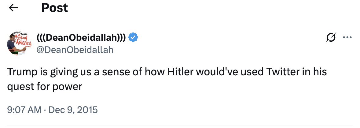I just figured the news about Trump securing the release of Hamas’s hostages seemed very… not-Hitler.
