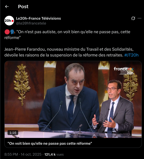 À peine nommé ministre du Travail et des Solidarités, JP Farandou s'illustre déjà par des propos validistes d'une violence inouïe. Celui qui est censé incarner les solidarités nationales commence son mandat en stigmatisant les personnes autistes et sourdes. 1/