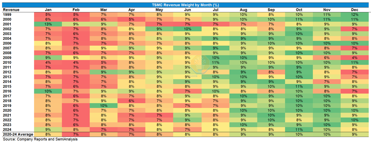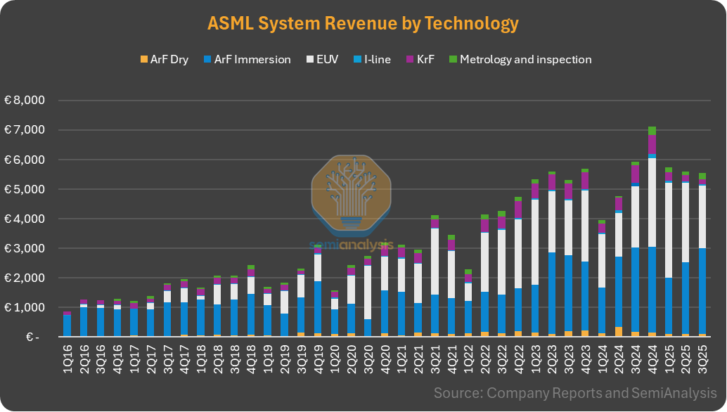- ASML's logic revenue down -6% q/q while memory up 10%; its primary customer TSMC's revenue grew 10% q/q