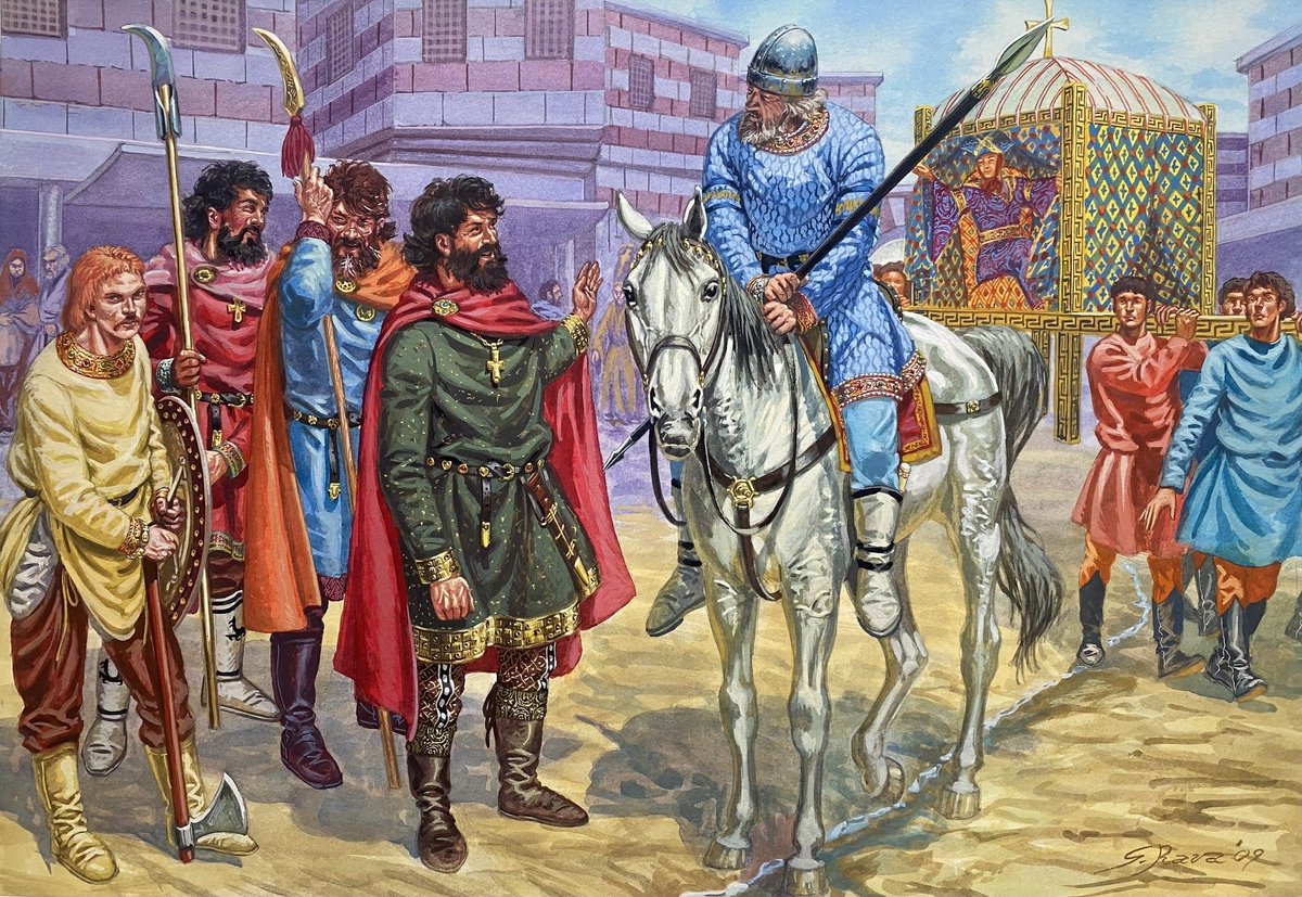 The Byzantines called the visitors from the North Varangians- the fearsome bodyguards of the Emperor. The finest warriors of the Middle Ages.