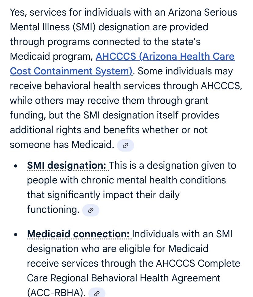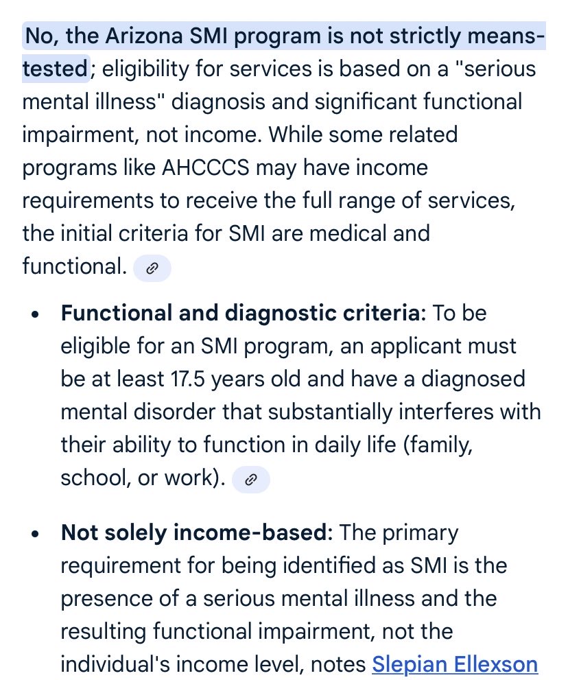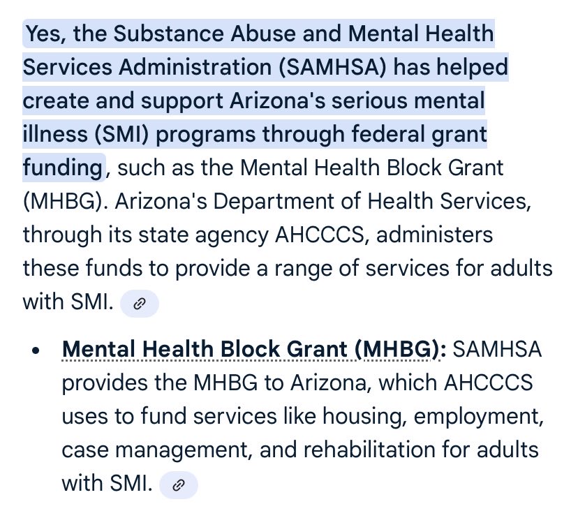 2) SAMHSA helped create Arizona’s SMI program. In a nutshell, what it does is provide free behavioral health services to those eligible—regardless of income. It’s not means tested. Free meds, therapy, and so forth. Let’s continue⬇️