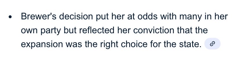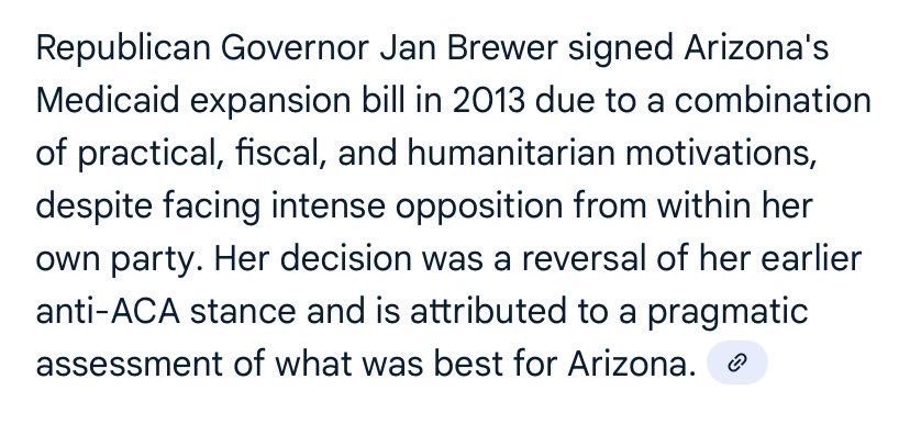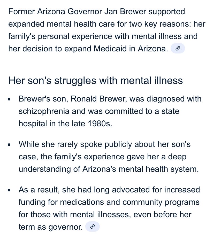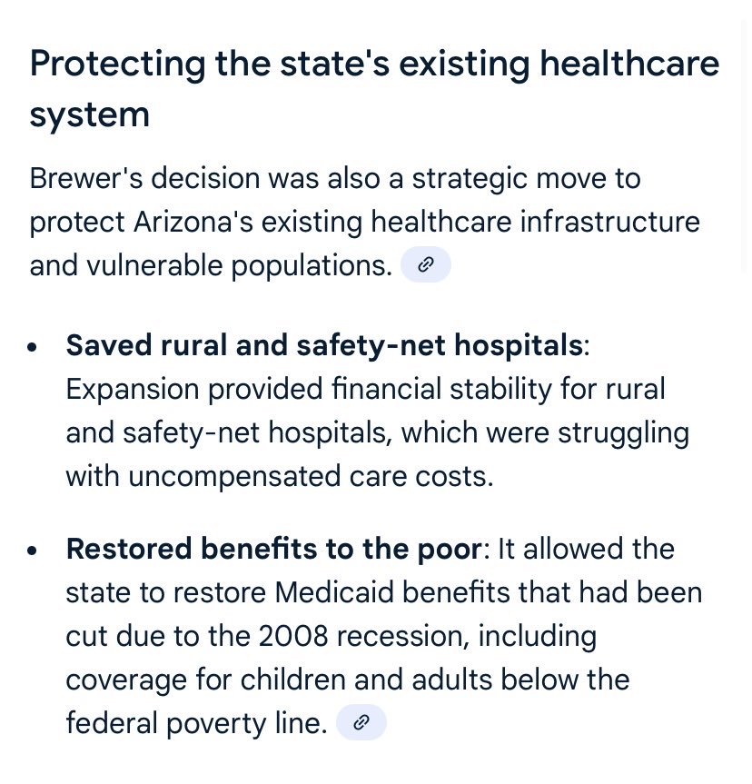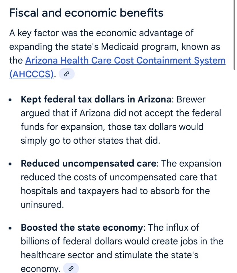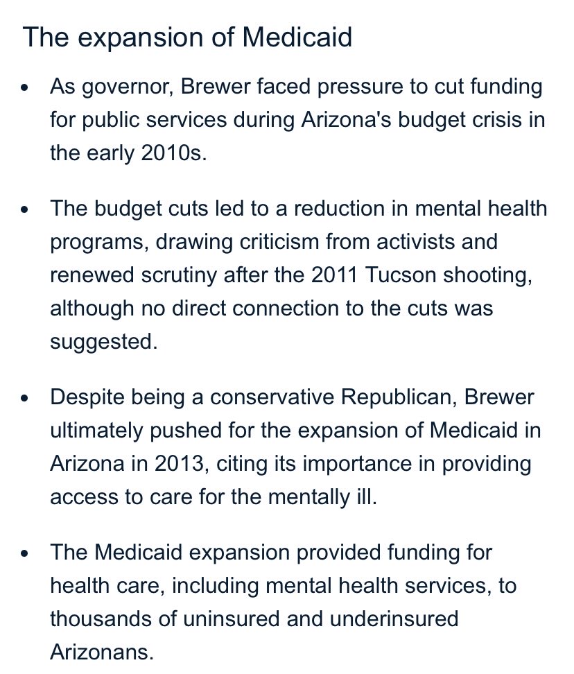 6) As we saw, the program is funded by Medicaid and grants from SAMHSA. And who expanded Medicaid in Arizona which also helped fund the SMI program? A Republican governor. Now, what were her reasons for expanding Medicaid? Let’s find out next⬇️