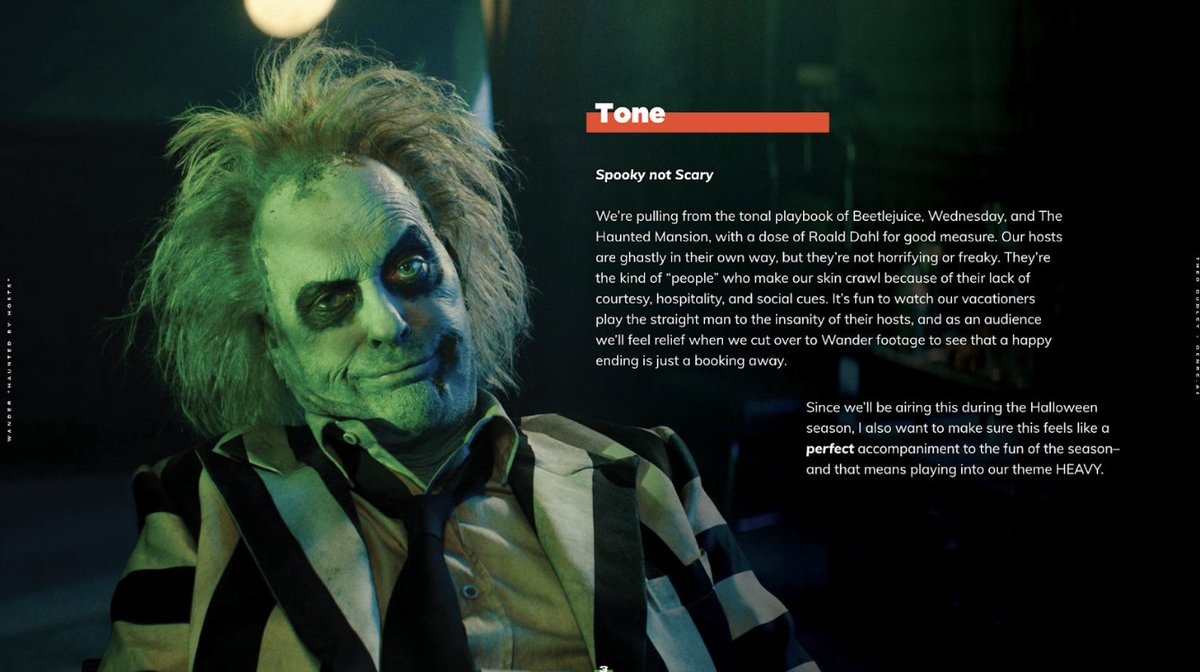 Tim Burton was a big inspiration for Theo growing up. Beetlejuice was a huge reference for this ad. He wanted a high-energy romp that wasn’t scary but never too safe either.
