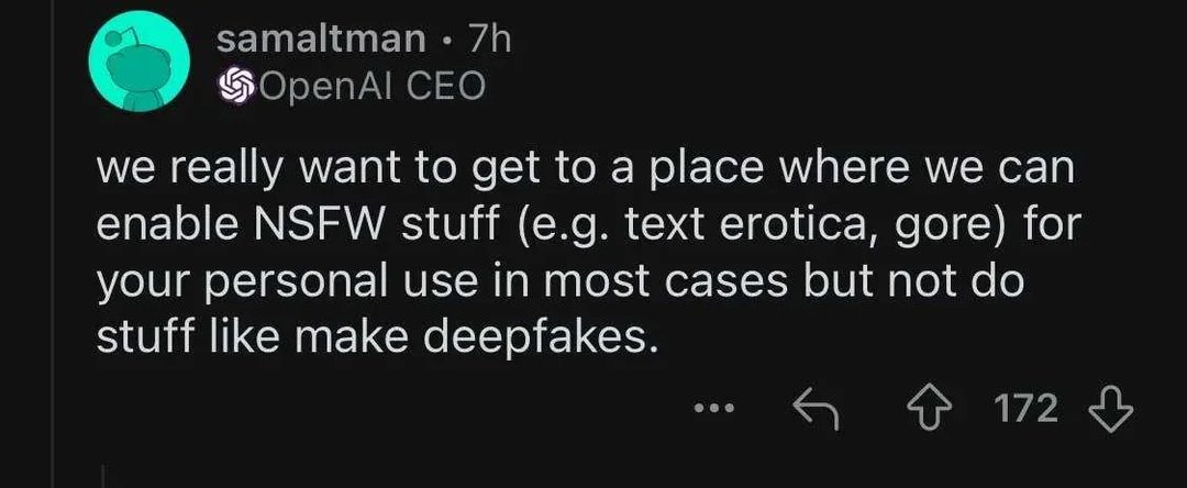 24 hours later, OpenAI announced ChatGPT will offer adult content, including erotica, starting in December.