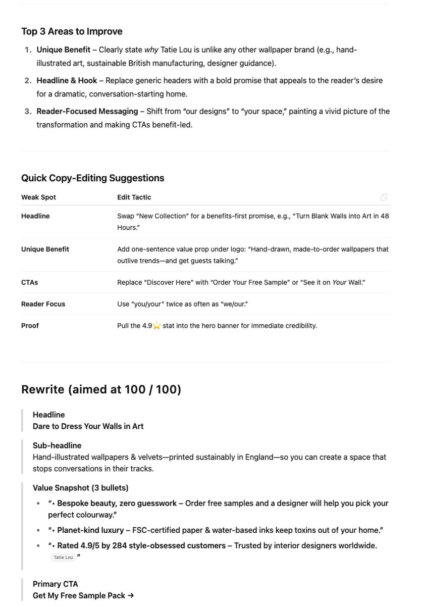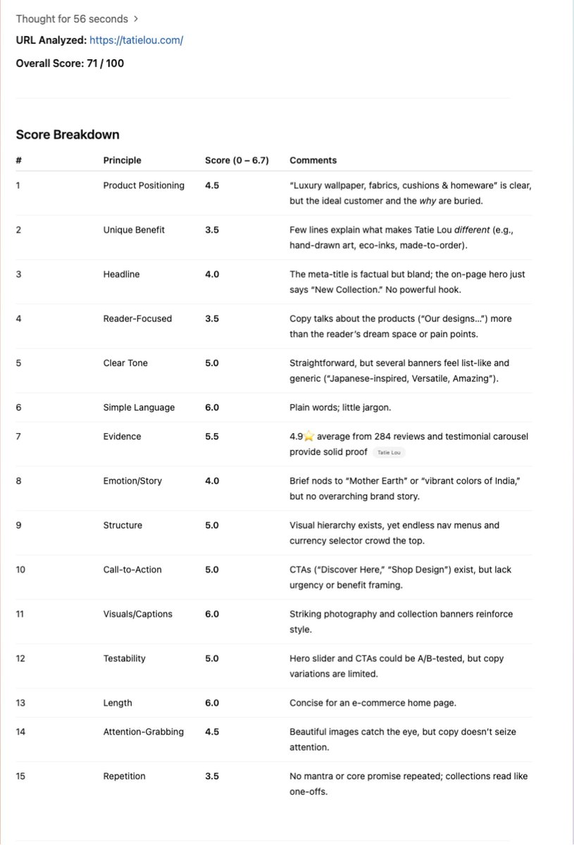 It’s an o3 prompt that scores your page using Ogilvy’s copywriting playbook and gives clear steps to make it better! 🔥