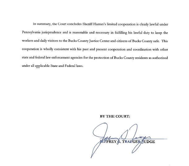 A Pennsylvania court THREW OUT the ACLU’s lawsuit attacking a local sheriff for working with ICE.