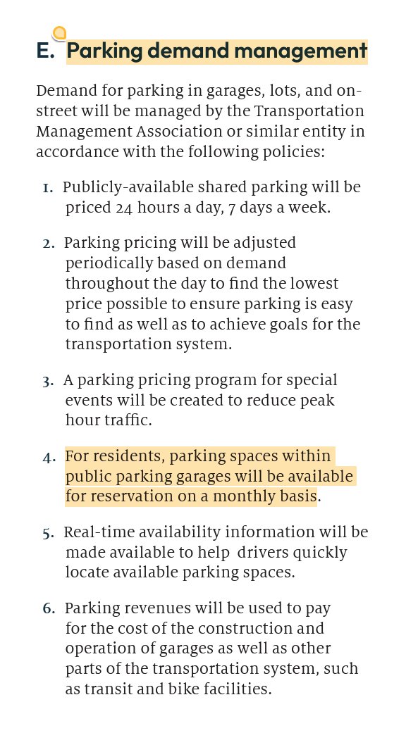 - Street and public-garage parking will be variable-rate metered 24/7 from the get-go.