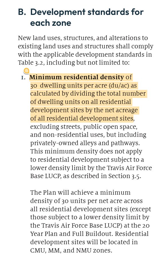The Plan states a minimum density of 30 du/acre, but it's not clear if that's meant to be binding on discrete building projects, as opposed to a citywide aspiration.