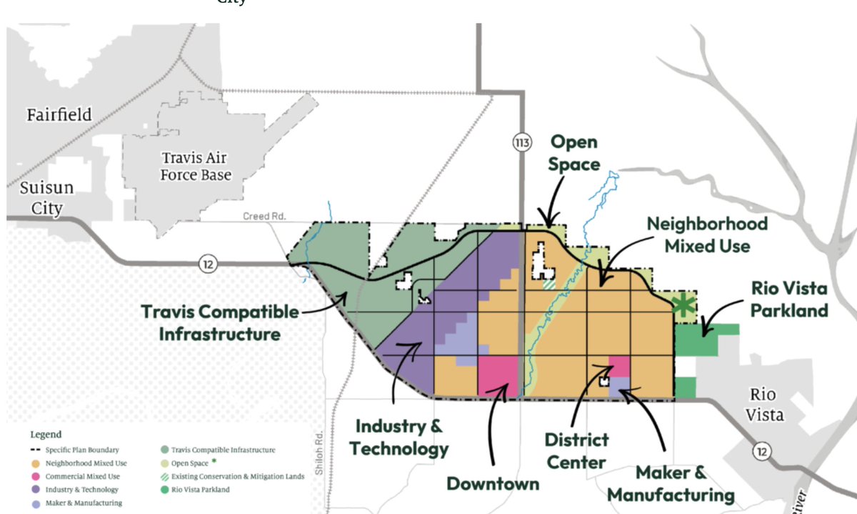 The current plan is to formally annex the new city into Suisun City. This gets around the county's voter-approval requirement for building in unincorporated areas.