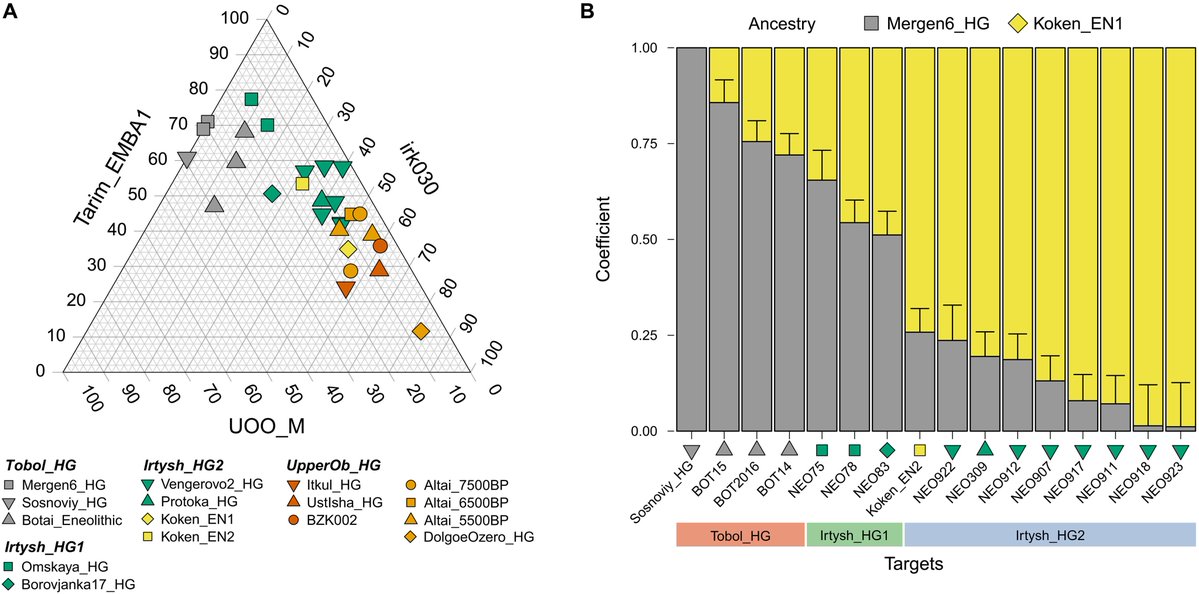 Fig. 3. QpAdm modeling of the genetic profiles of ancient Siberian forest-steppe hunter-gatherers.