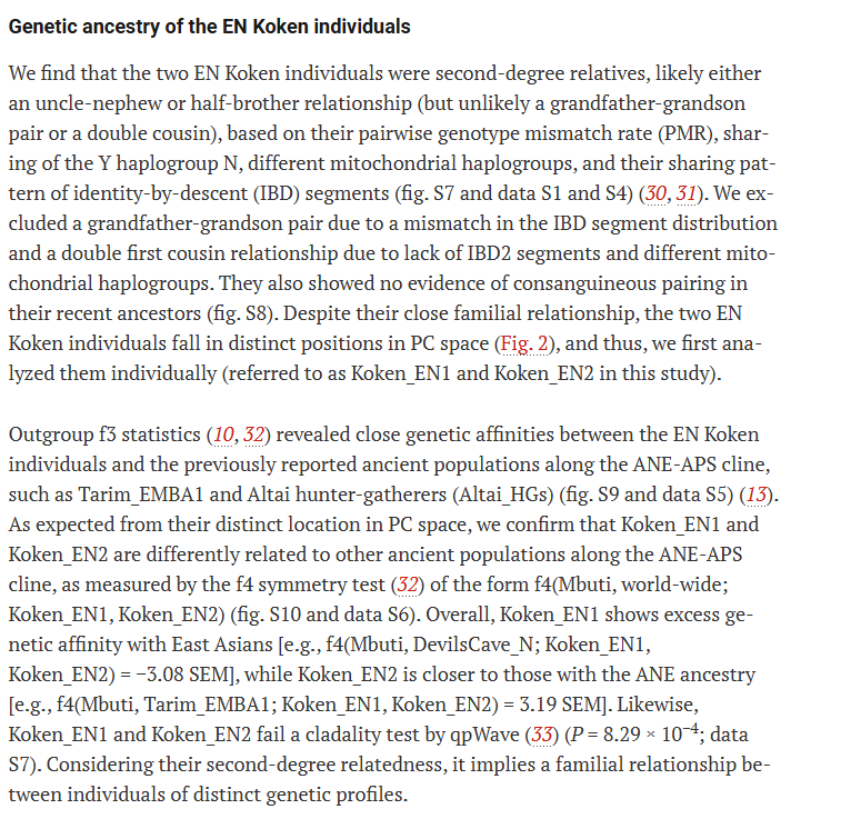 Reflecting their close kinship but distinct genetic profiles, we find that Koken_EN1 and Koken_EN2 provide a suitable proxy for the major source of each other’s admixture modeling using qpAdm