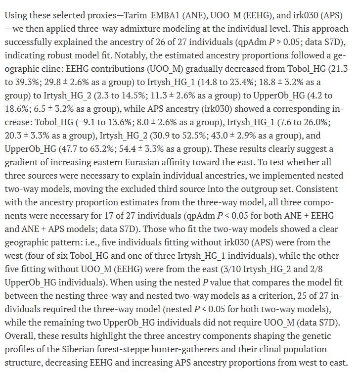 Distal admixture modeling using qpAdm, modeling each individual as a mixture of ANE, EEHG, and APS ancestries (Fig. 3 and data S7)