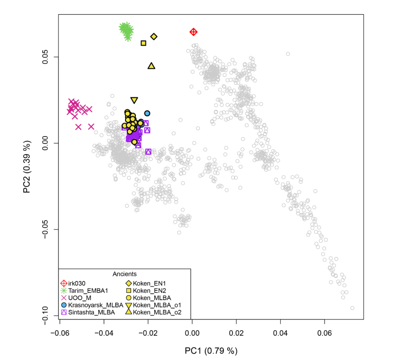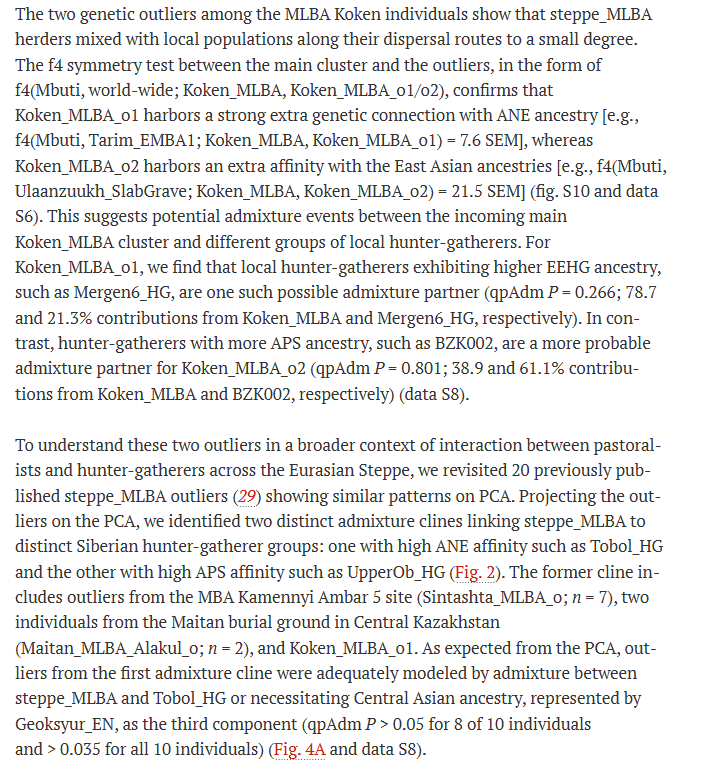 The two genetic outliers among the MLBA Koken individuals show that steppe_MLBA herders mixed with local populations along their dispersal routes to a small degree.