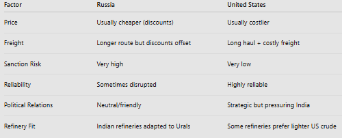 🔹India will pay $2–5 more per barrel from alternative suppliers like Saudi Arabia, Iraq, US.
