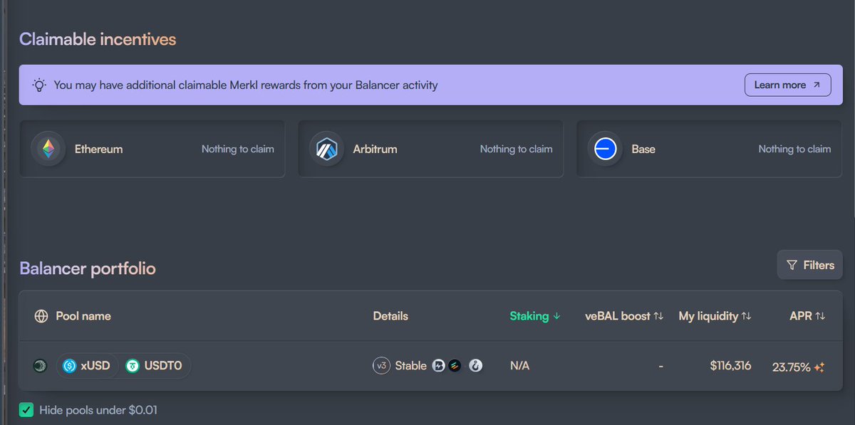 This is LPing xUSD with Euler-Lent USDT for a 23% APR + Stream Points.