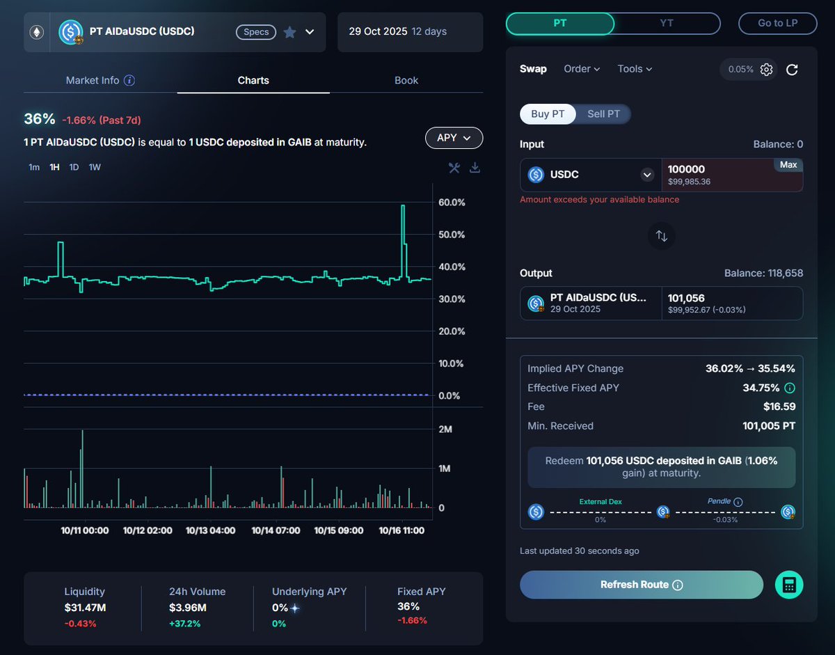30% actual APR at 100K deposit just yeeting USDC into the pendle market direct (1% ROI).