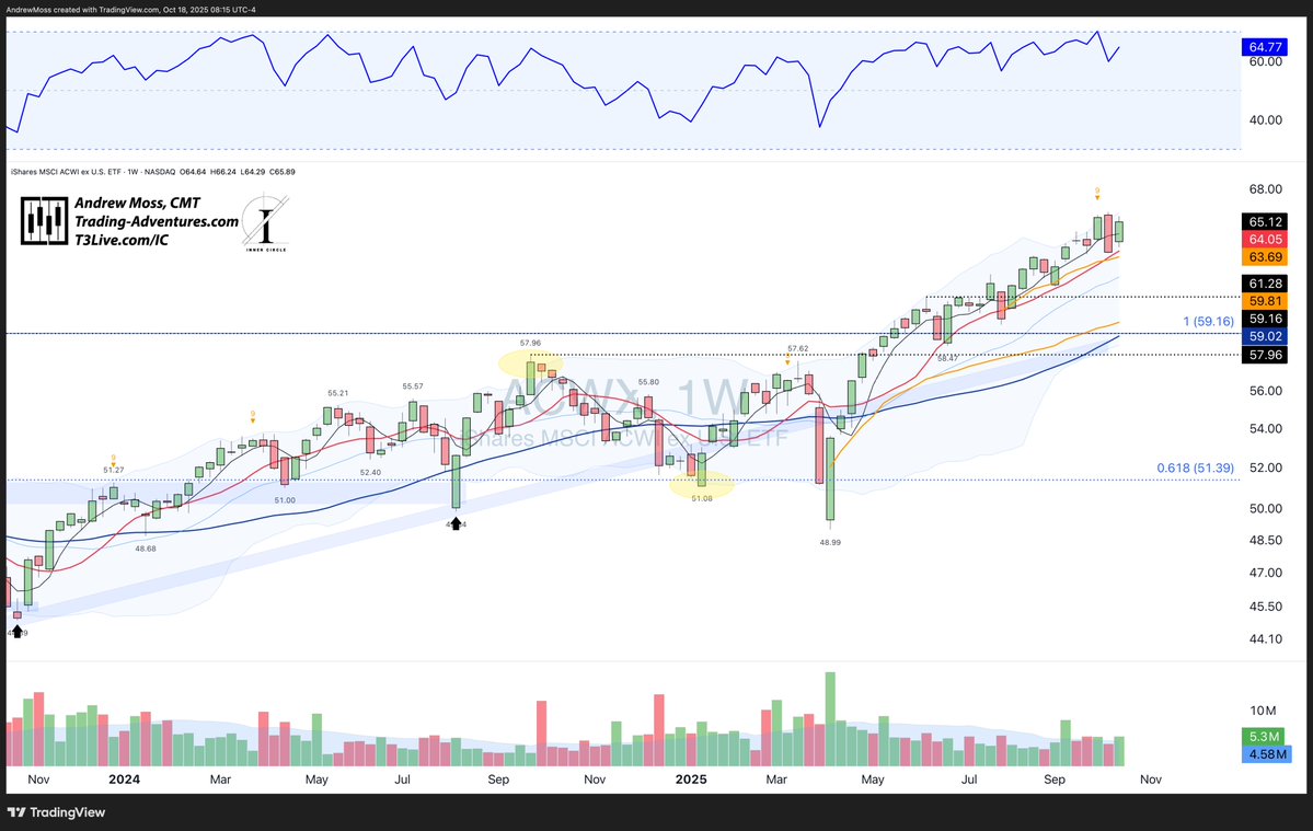 The Rest of the World repaired much of last week’s damage, moving back near recent highs on rising volume back above its 20-week average.