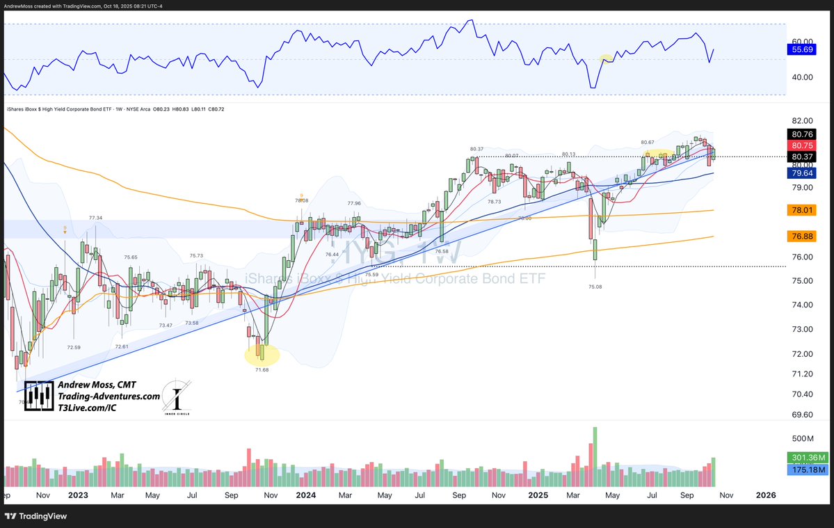 $HYG recovered most of last week’s losses but finished just under the 10-week MA.