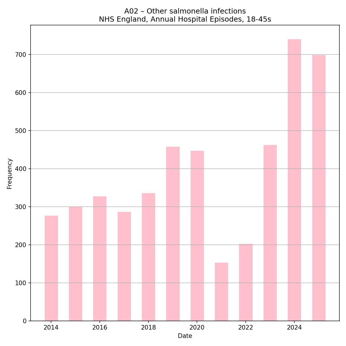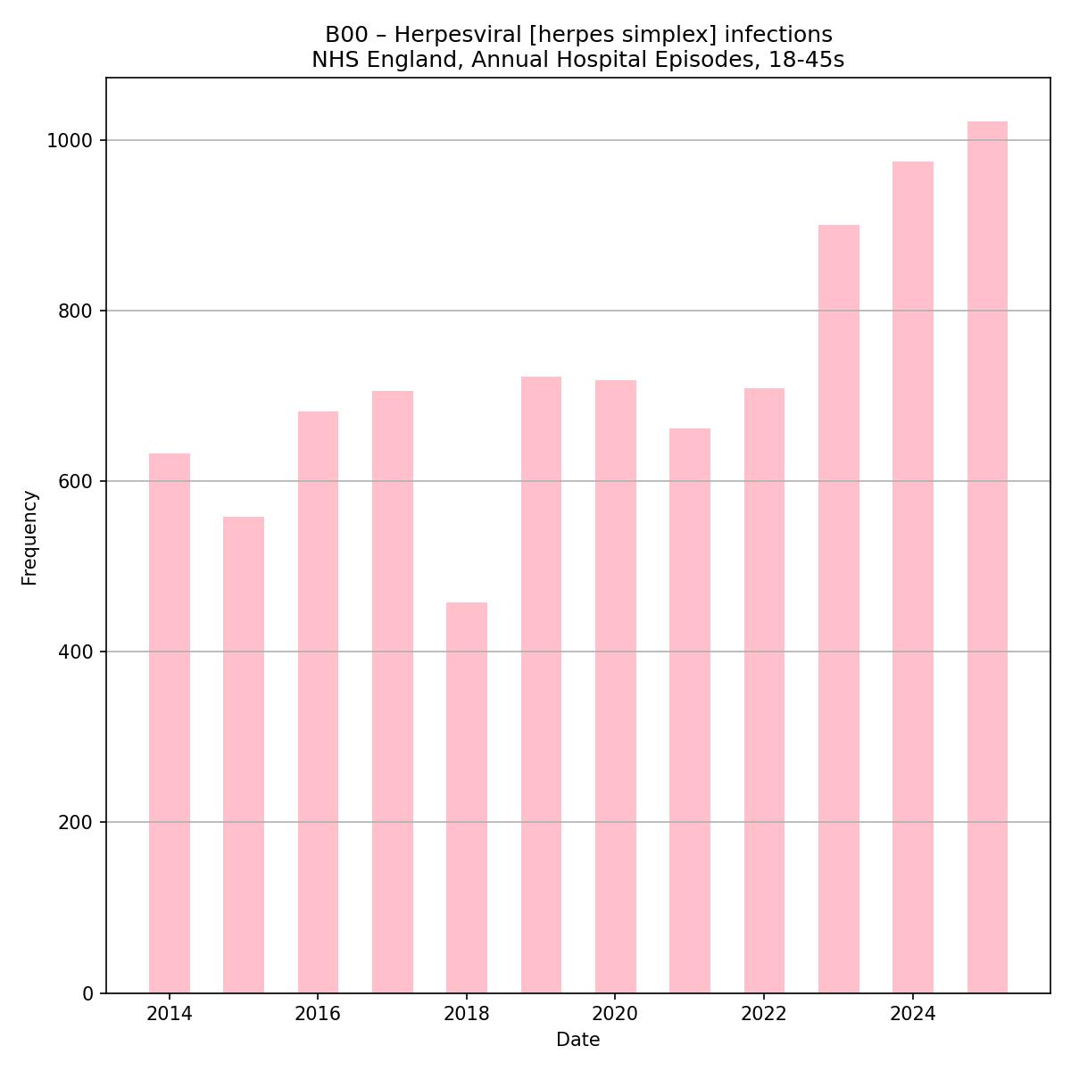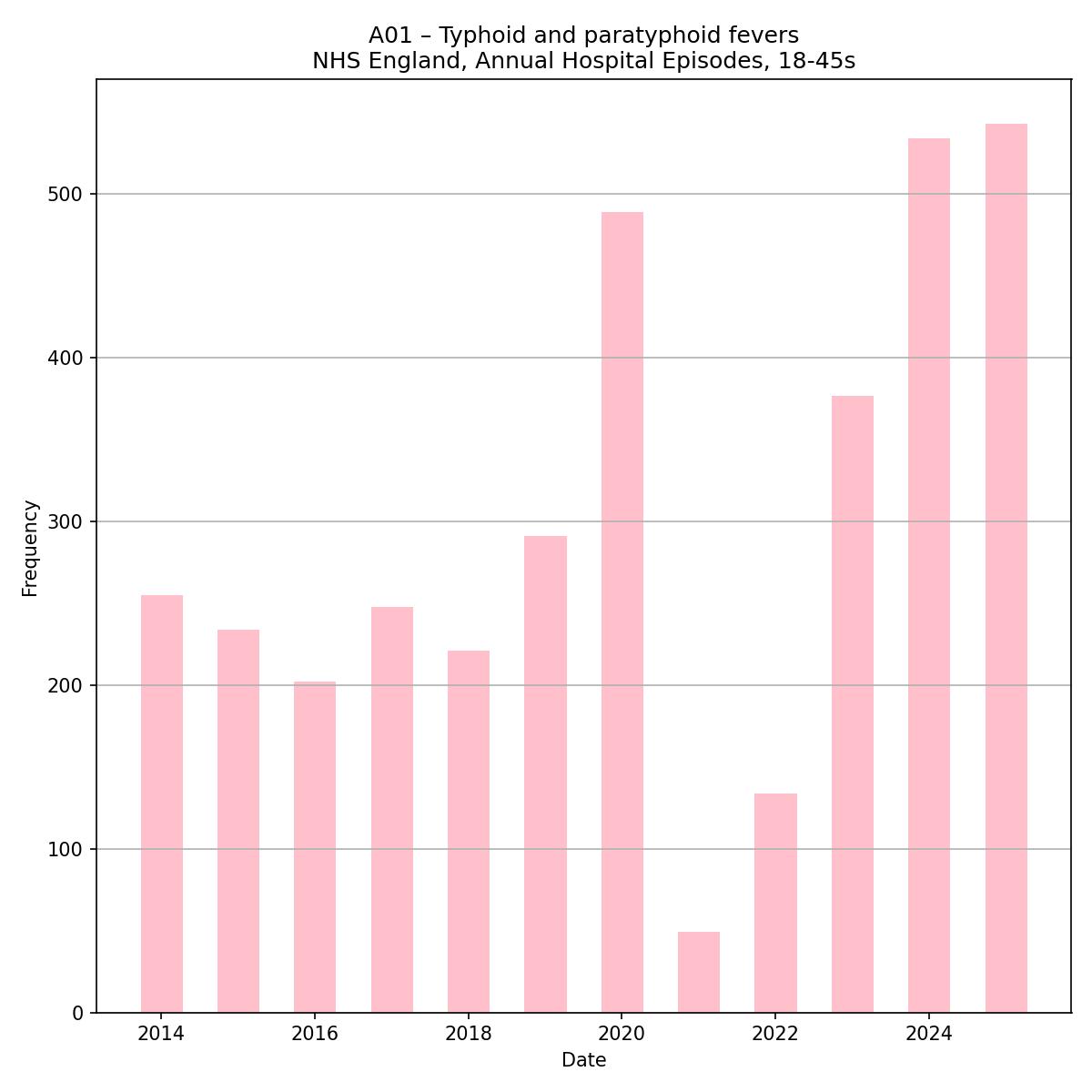 A few of the pathogen highlights from the last couple of years as they appear in English hospital episode statistics for *young* adults.