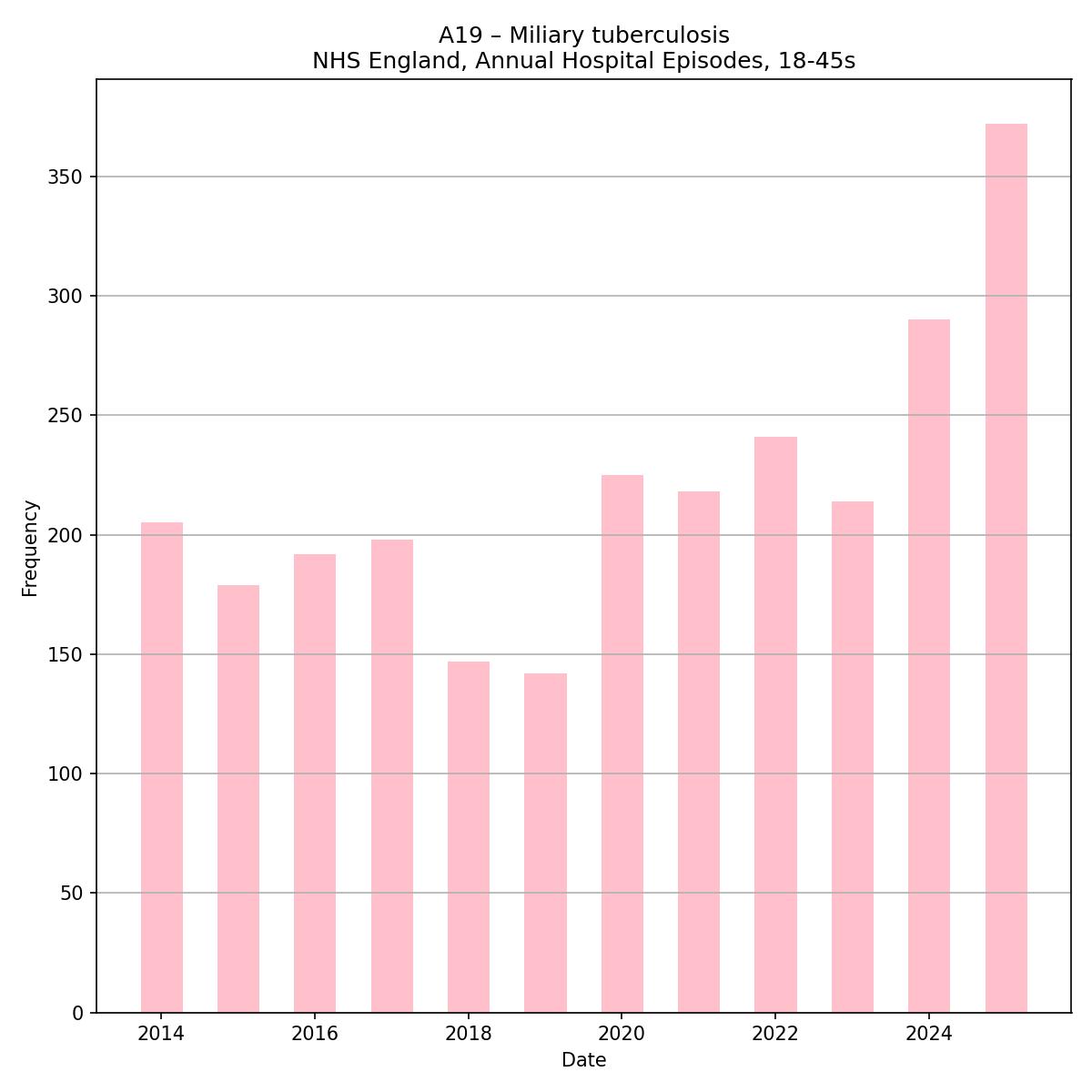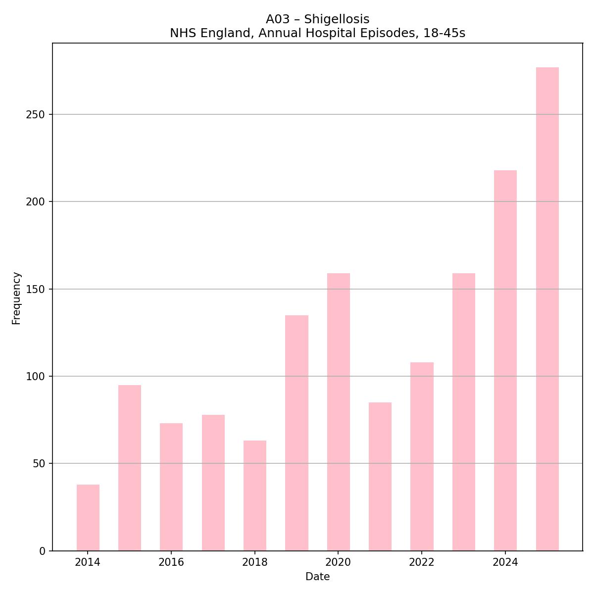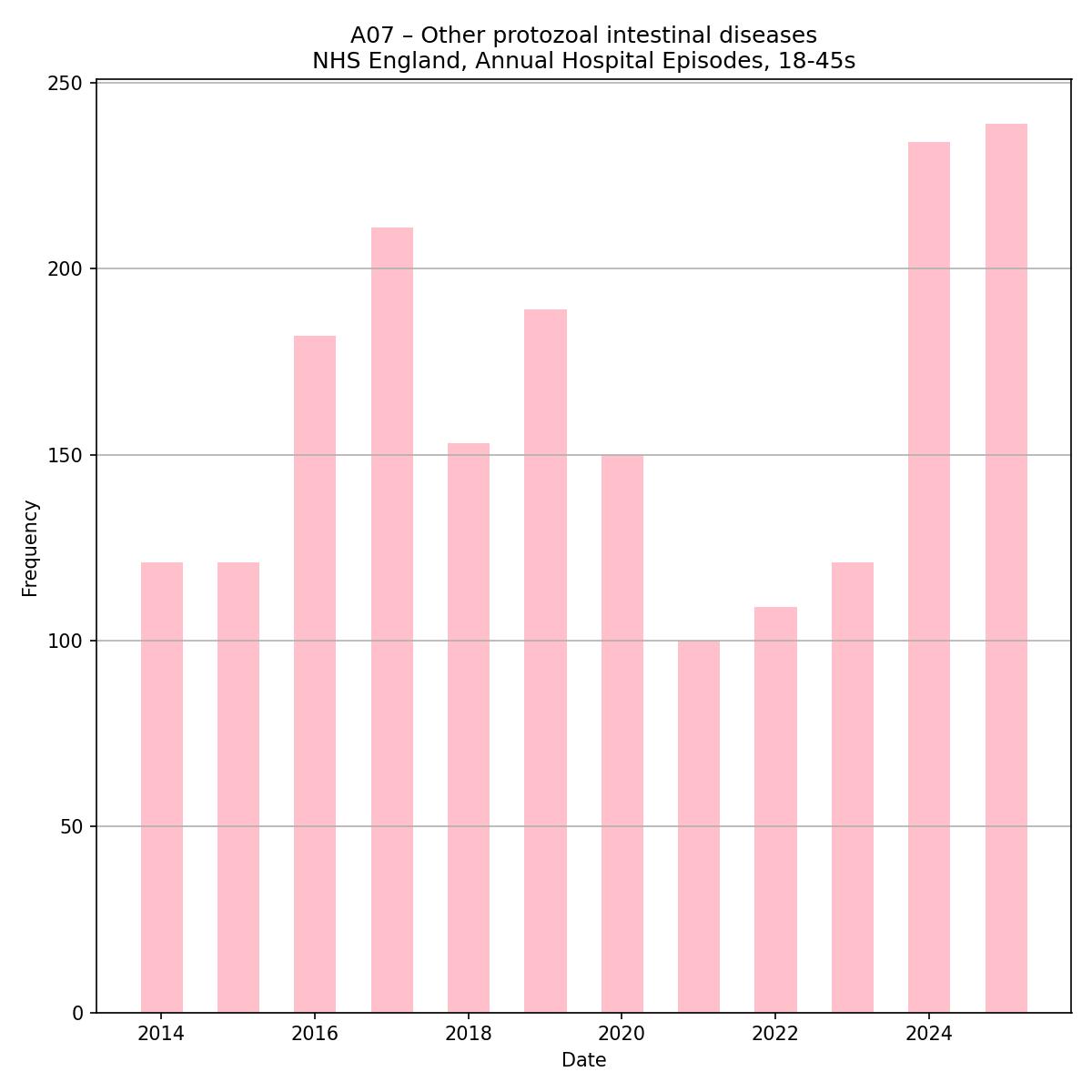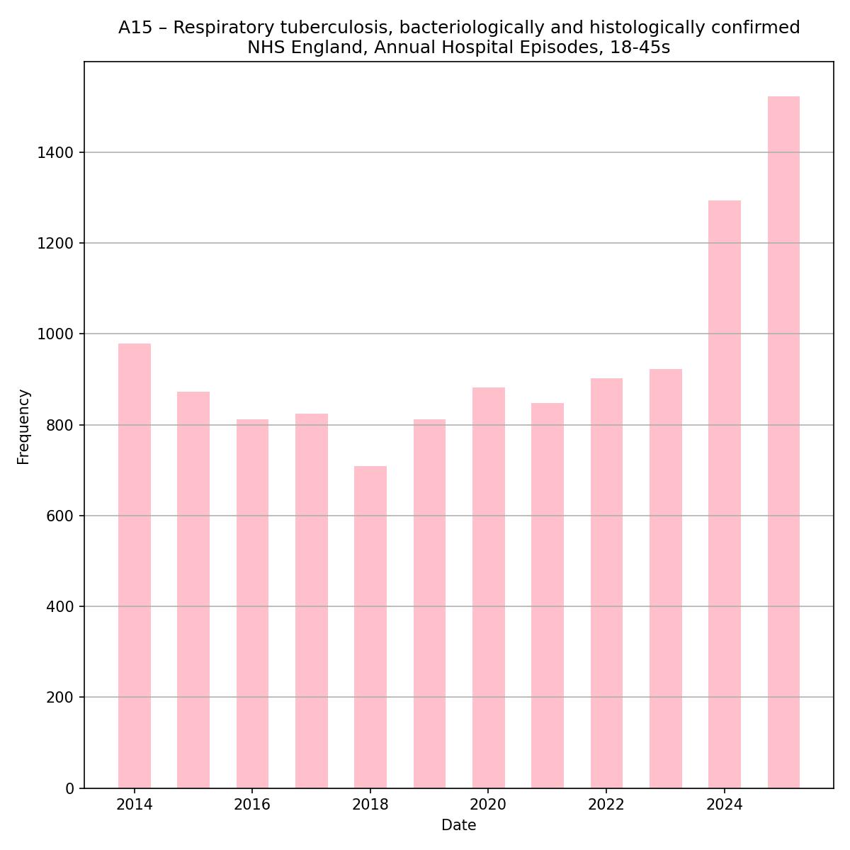 A few of the pathogen highlights from the last couple of years as they appear in English hospital episode statistics for *young* adults.