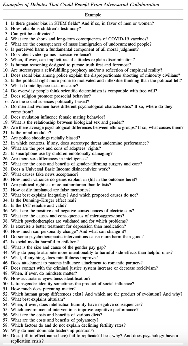 3. We include a list of 60 debates that would benefit from ACs (adapted from an earlier list made w/@PTetlock). But this is a drop in the bucket of potentially millions of published papers that contradict other published papers.