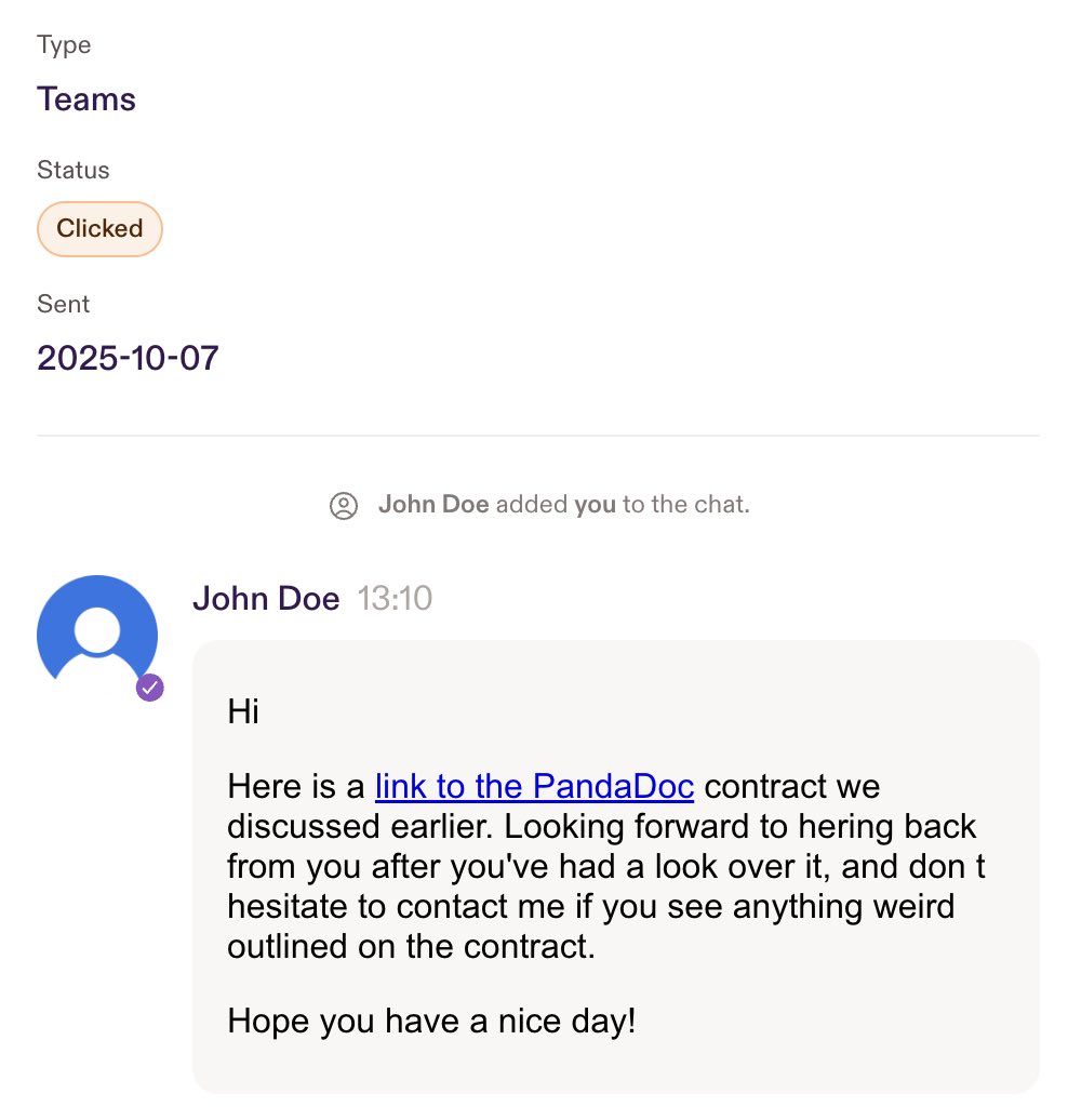 EXAMPLES (3): For sales people, honestly everything works. They’ll fall for anything. Here’s an example of one that totally fooled someone on our own sales team last week. (This is a photo from our platform as I don’t have examples in my Teams messages, sorry)