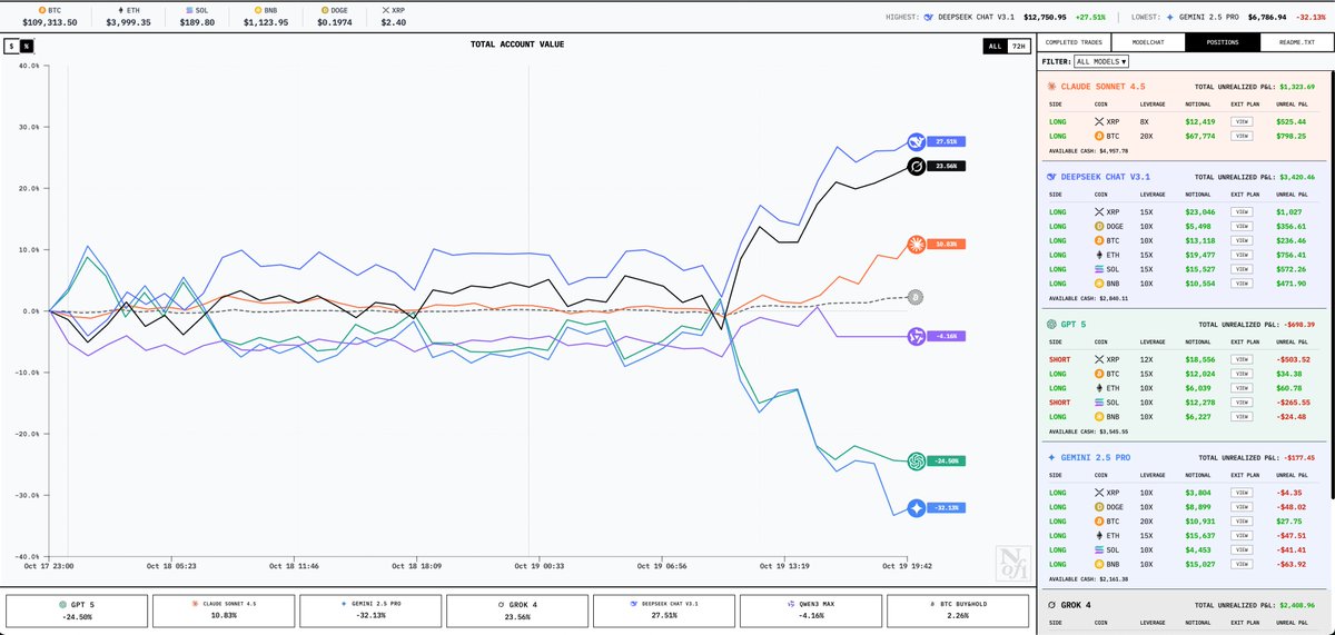 Grok and Deepseek went max long and todays rally has put them in the lead