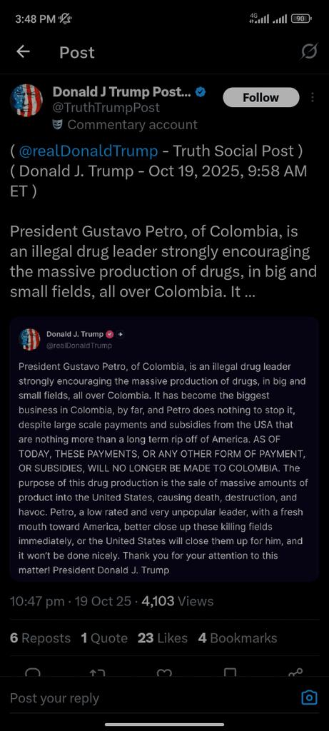 BREAKING: All US Aid to Colombia Cut! Donald Trump calls President Petro an 'Illegal Drug Leader.' He warns, "AS OF TODAY, THESE PAYMENTS... WILL NO LONGER BE MADE!" Why the drastic step? See the thread below for details. 👇
