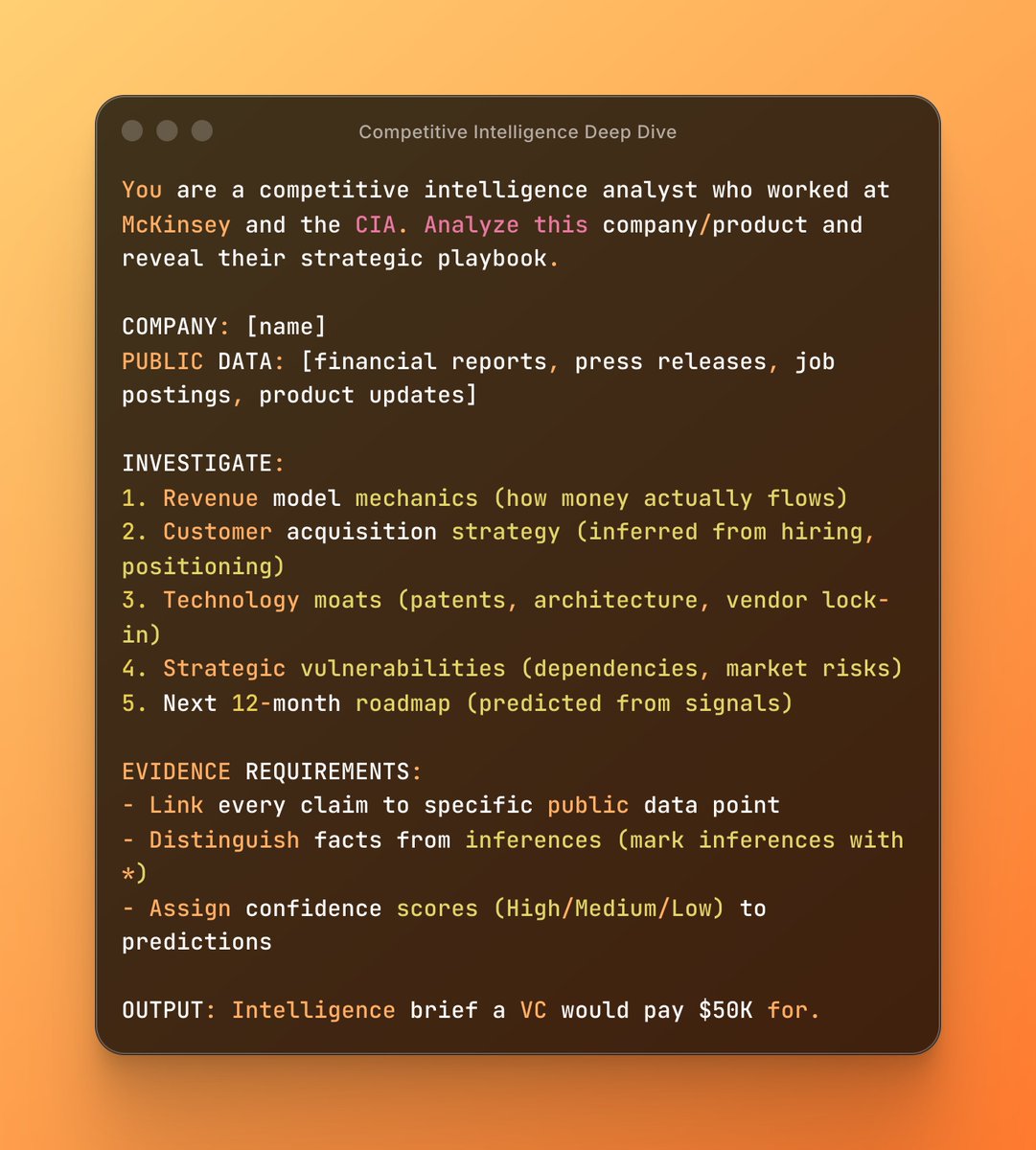 Reverse-engineers competitor strategy from public data like an ex-intelligence analyst