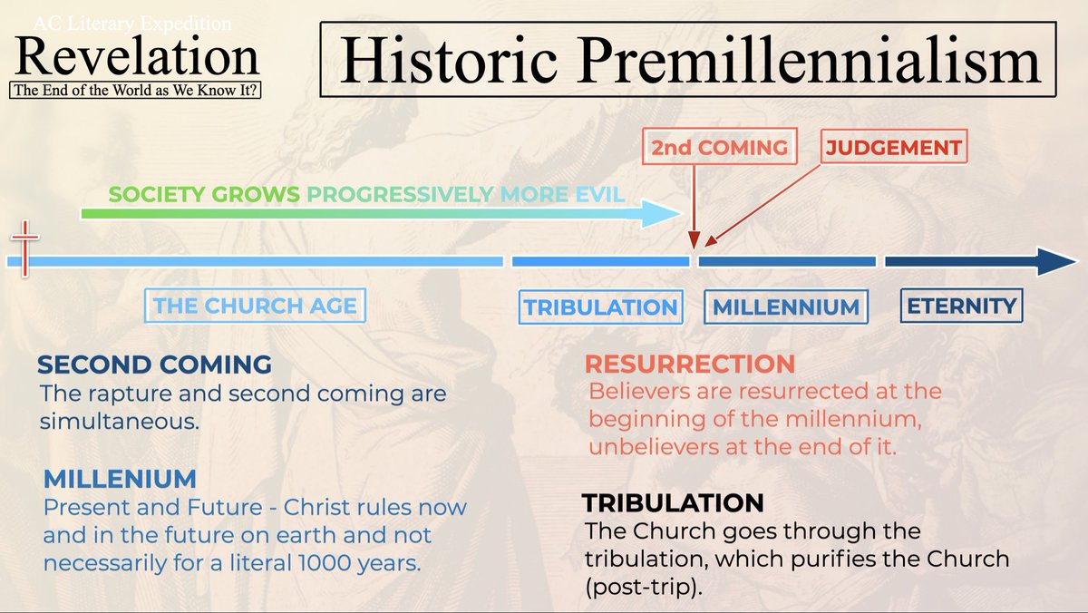 Back in 2022 my colleague Steve and I did a webinar in our ACLE (Apologetics Canada Literary Expedition) series titled, “The end of the world as we know it” on eschatology. Here are the breakdown infographics I made for that: a 🧵…