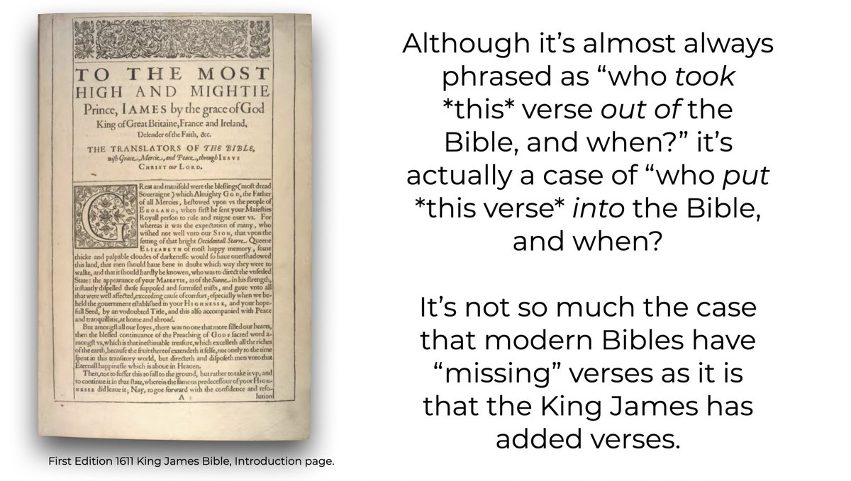 Ever heard someone say “I don’t read modern English translations because they took verses out of the Bible!” Well today’s #manuscriptmonday tackles that very issue. What if I told you that whatever Bible they’re using as the standard (although let’s be honest, they’re probably talking about the KJB), is part of a tradition that put verses into the Bible? It’s not a matter of “who took them out and when?” but, “who put them *in* and when?”