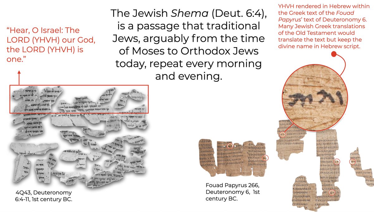 Today’s #manuscriptmonday includes a handful of copies of Paul’s 1st letter to the Corinthians. Particularly where Paul uses one of the most common statements about God — the Shema — and weaves Jesus into it (a 🧵)…