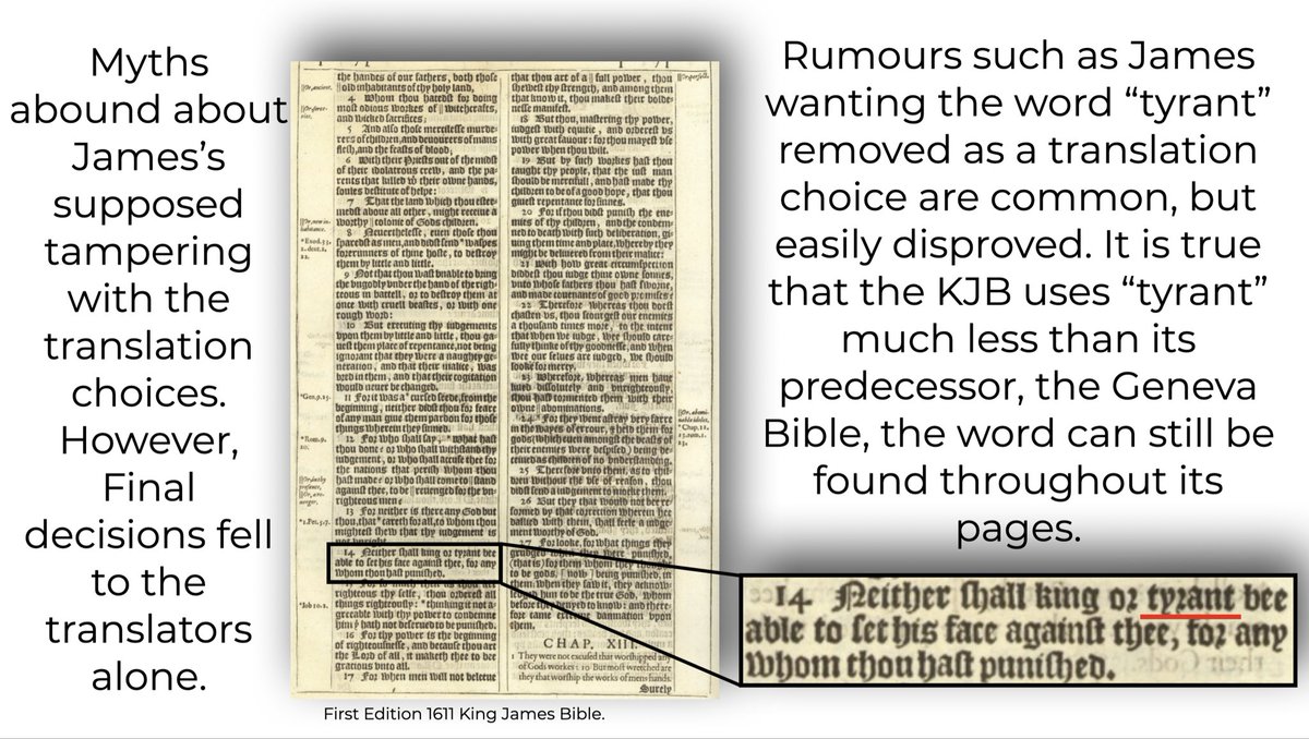 Rumours such as James wanting the word "tyrant" removed as a translation choice are common, but easily disproved. It is true that the KJB uses "tyrant" much less than its