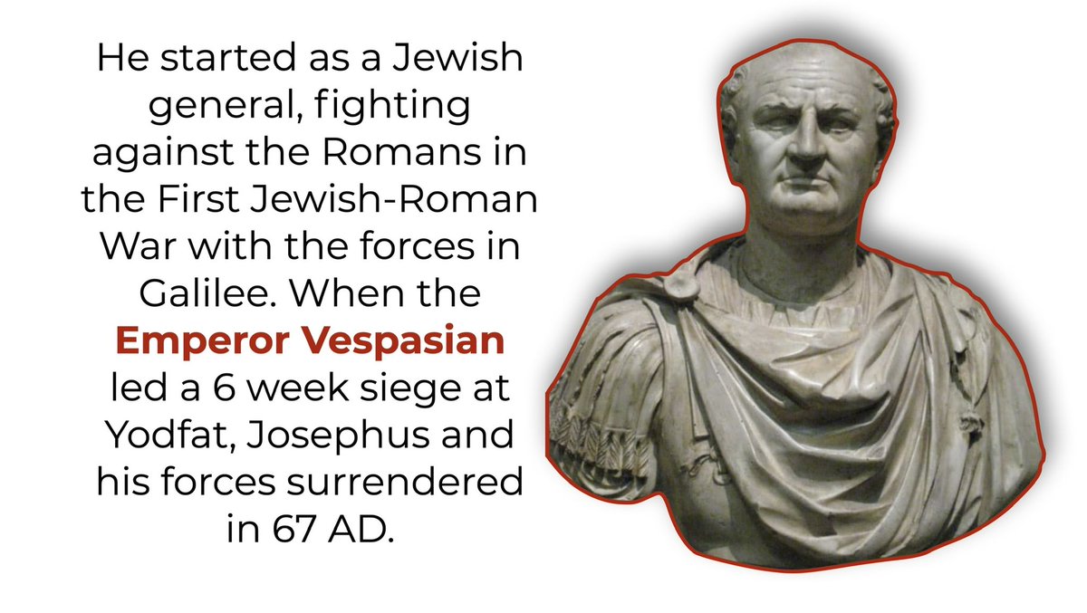He started as a Jewish general, fighting against the Romans in the First Jewish-Roman War with the forces in Galilee. When the Emperor Vespasian led a 6 week siege at Yodfat, Josephus and his forces surrendered in 67 AD.