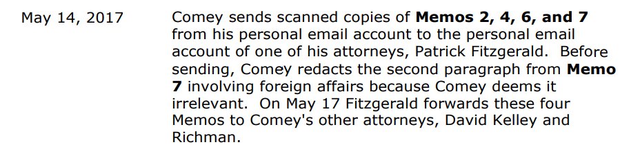 Comey gave copies of Memos 2, 4, 6, and 7 to Fitzgerald.